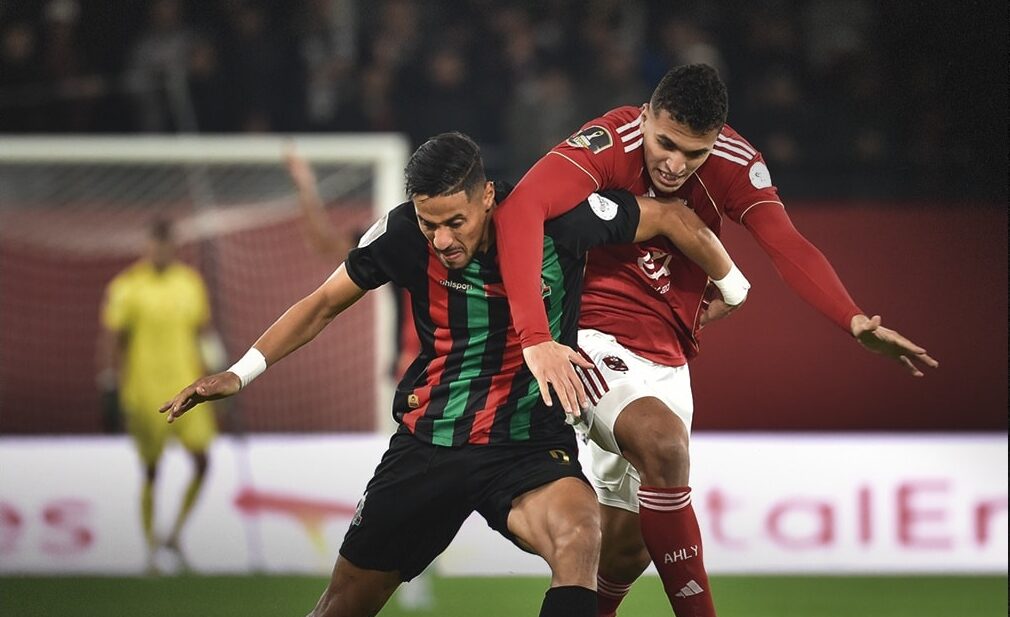 ورغم بعض محاولات الأهلي المصري نجح رضا التكناوتي في الحفاظ على نظافة شباكه، لينتهي الشوط الأول بتقدم أصحاب الأرض والجمهور.