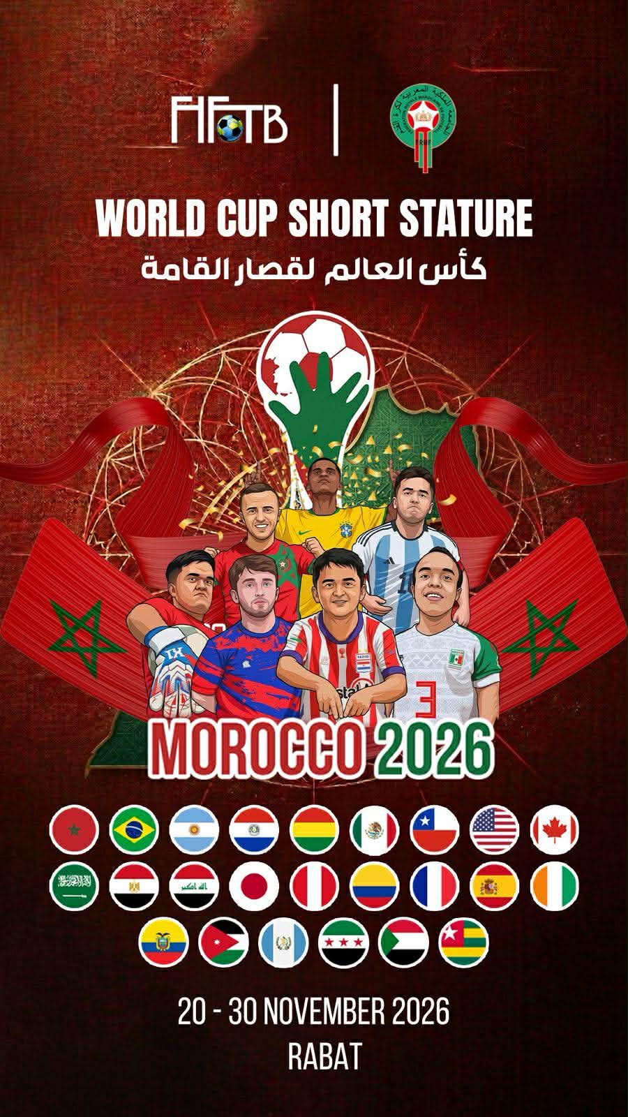 ينظم المغرب النسخة الثانية لبطولة العالم لكرة القدم لقصار القامة في الفترة الممتدة ما بين 20 و30 نونبر 2026 بمشاركة 24 منتخبا.