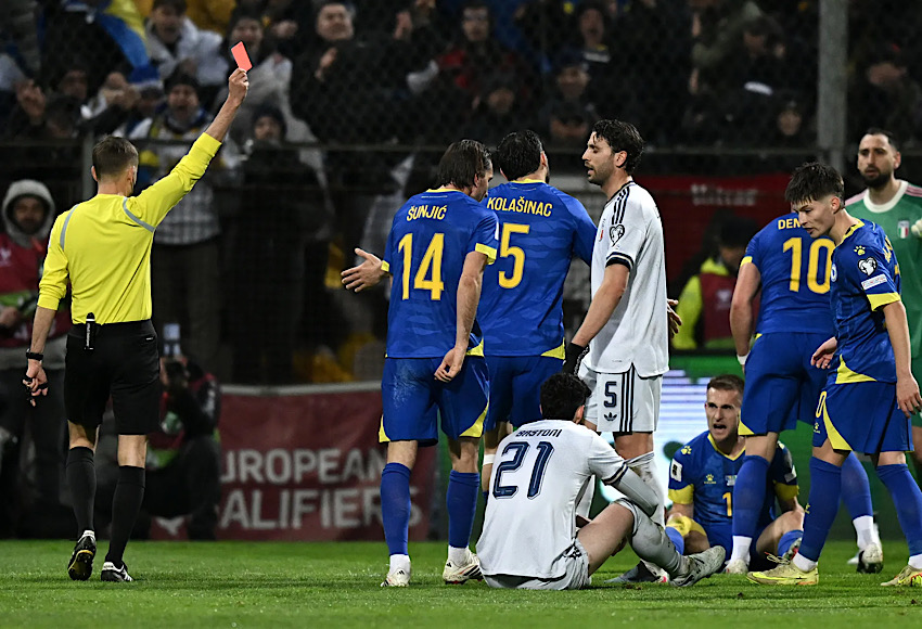 فشل المنتخب الإيطالي في التأهل لمنافسات كأس العالم 2026، بعد هزيمته مساء اليوم الثلاثاء أمام منتخب البوسنة والهرسك برالكلات الترجيحية، في مباراة الملحق المؤهل للمونديال، والذي ستحتضنه كل من الولايات المتحدة الأمريكية وكندا والمكسيك.