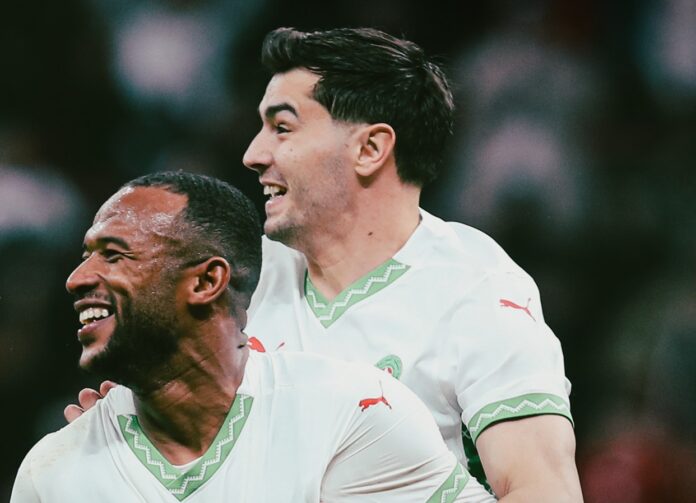 دخل المنتخب المغربي المباراة بمعنويات مرتفعة، وسعى مبكرا من أجل التسجيل، وذلك ما تأتى في الدقيقة الـ9 بواسطة أيوب الكعبي، وتواصل ضغط الكتيبة الوطنية لإحراز أهداف أخرى، وفي الدقيقة الـ27 سجل نجم ريال مدريد الإسباني إبراهيم دياز الهدف الثاني لأسود الأطلس.