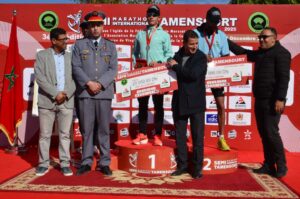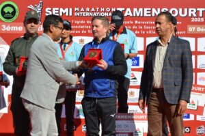 كما توج السيد ممثل الدرك الملكي بتامنصورت أبطال نصف المارطون مرفوقا بممثل مؤسسة العمران الراعي الرسمي للتظاهرة . و باشا مدينة تامنصورت ممثل السيد والي جهة مراكش أسفي.