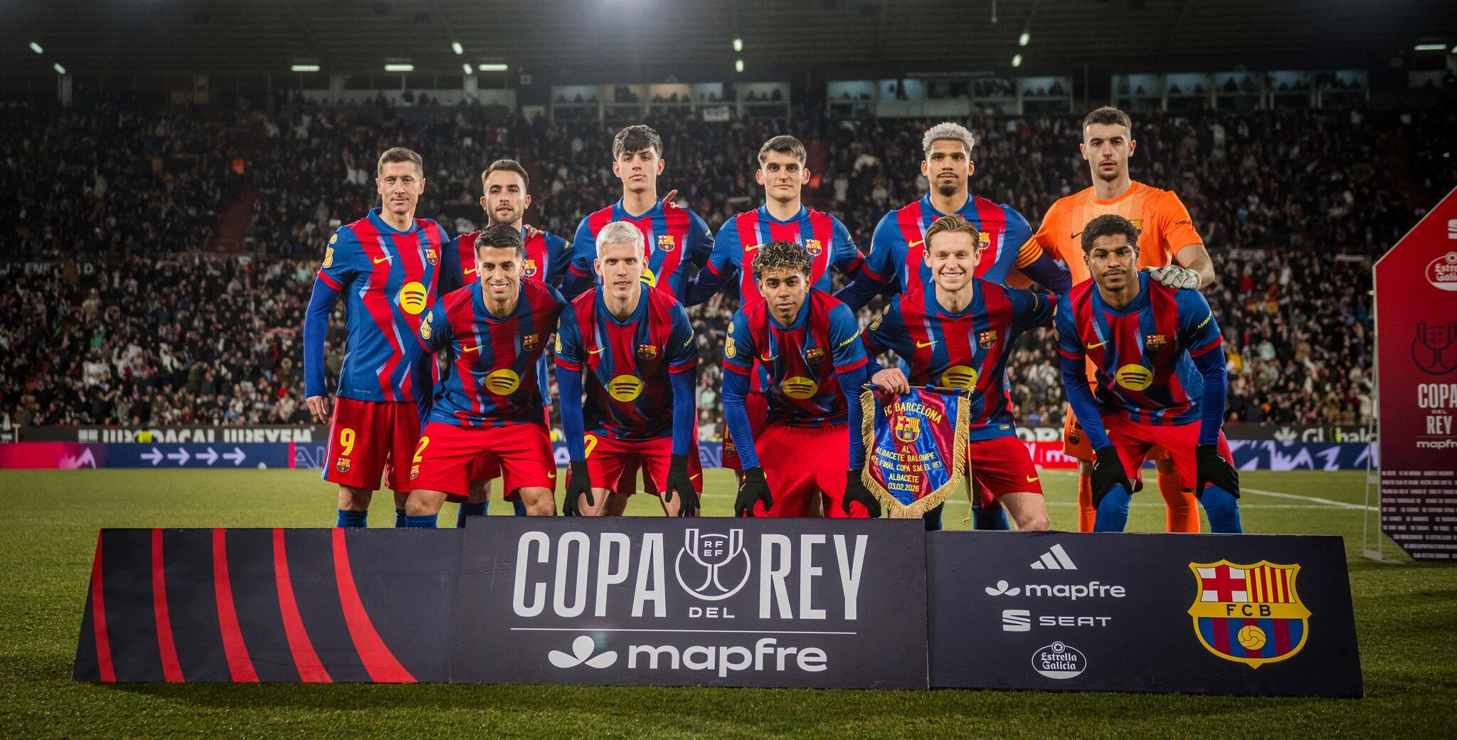 ونجح لامين يامال في اختراق السد الدفاعي لألباسيتي أمام هجمات برشلونة، وذلك في الدقيقة الـ39 مسجلا الهدف الأول، لتنتهي الجولة الأولى بهدف نظيف.