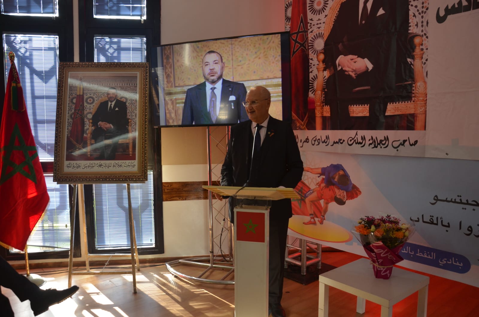 Une réception a donc été donnée en l’honneur des champions à laquelle ont été conviées d’éminentes personnalités, dont, le Consul Général de la Fédération de Russie à Casablanca, le représentant de Monsieur le Directeur des Sports du Ministère de l’Education Nationale, du Préscolaire et des Sports, le représentant du Comité National Olympique Marocain, ainsi que les membres du bureau fédéral, les présidents et les directeurs techniques des clubs affiliés à FRMSTJ.